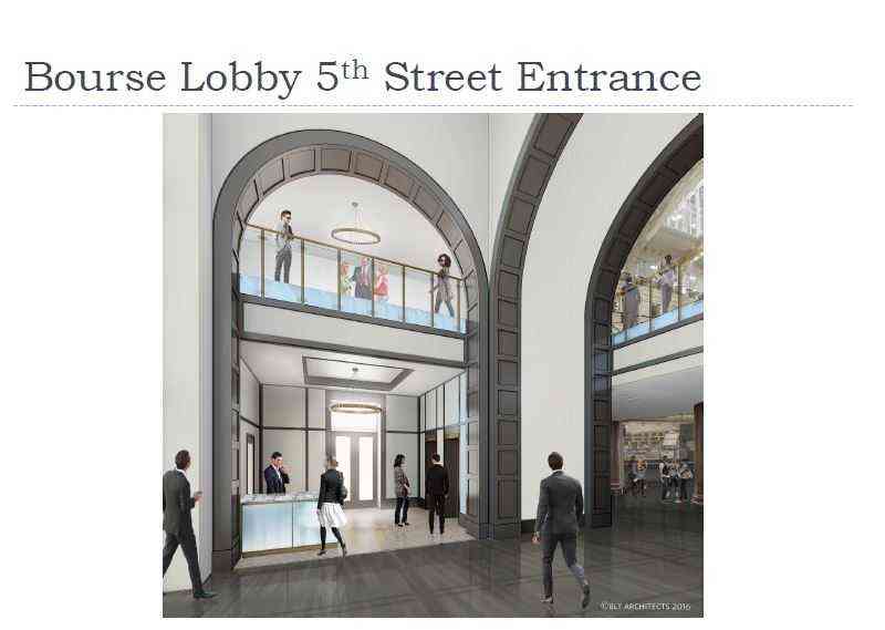 The Bourse Building is a 10-story, historically significant icon located on Independence Mall in the heart of Philadelphia's historic district. The building consists of 299,300 square feet of office and retail space and offers direct views of Independence Mall to the West, and sweeping, unobstructed views of Old City, the Ben Franklin Bridge, and the Delaware River on the East. The building is currently compromised of a two-story retail component on the ground and concourse level. The office component is floors three through ten. The Philadelphia Bourse Building was the first commodities exchange in the U.S., inspired by the motto, "buy, sell, ship via Philadelphia."